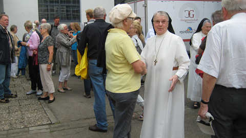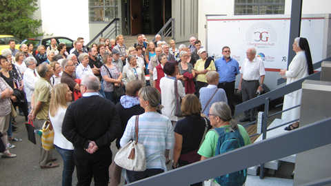 Schwester Carola gab hier anhand der Gebäude eine Übersicht über das Kloster, das zu Beginn eine fast autarke Einrichtung war. Eine vielseitige Landwirtschaft deckte den Bedarf der Schwestern an Lebensmittel. Die Pflege der alten und kranken Schwestern war durch die Gemeinschaft gesichert. Heute ist unsere Gemeinschaft auf viele nicht klösterliche Mitarbeiter angewiesen, angefangen von der Verwaltung bis zur Versorgung der Schwestern.