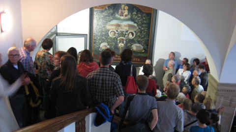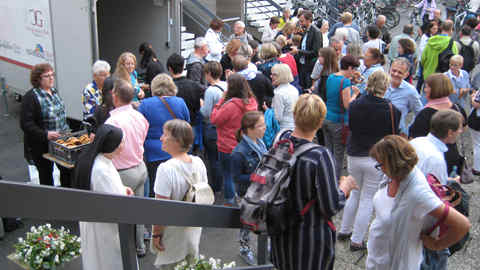 Die „Nächtliche Kirchentour“ begann in unserm Mutterhaus. Vor 18 Uhr trafen schon die ersten Besucher im Klosterhof ein.