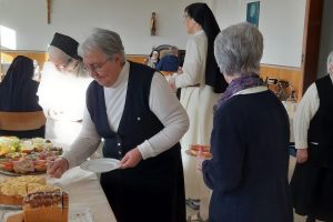 Das Treffen begann mit der Begegnung bei Kaffee und Kuchen. Ein Gang durch unser weitläufiges Mutterhaus brachte lebhafte Gespräche.